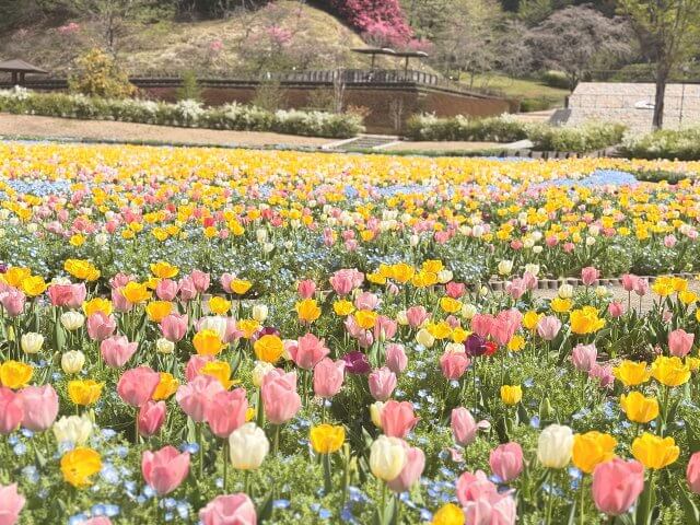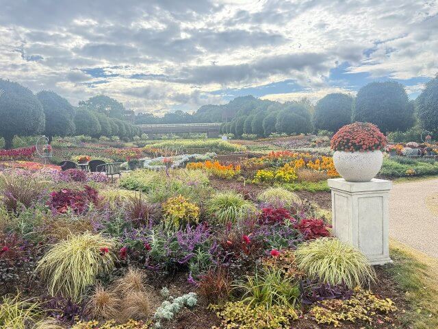 バラ以外にも、ネモフィラやひまわり、コスモスなどがあり、バラが最も見ごろとなる春・秋を中心に、1年を通してお花を楽しみ、四季を感じていただけます。