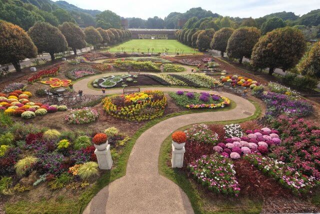 バラ以外にも、ネモフィラやひまわり、コスモスなどがあり、バラが最も見ごろとなる春・秋を中心に、1年を通してお花を楽しみ、四季を感じていただけます。