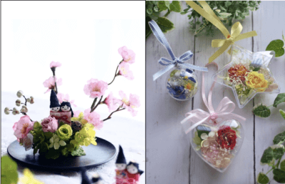 「おひなさまアレンジ&カプセルフラワー」 ◇プリザ、ドライ、アートフラワーを使ったアレンジメント体験です。お花は好きな色をお選びいただけます。 |