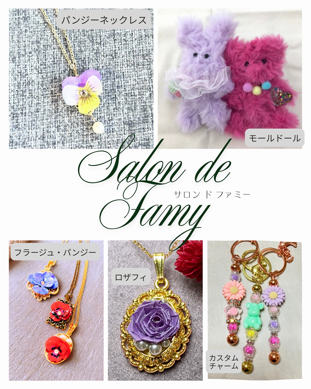 「パンジーやバラのアクセサリーをつくろう」 ◇プラ版やフラージュのパンジーを作りアクセサリーにする体験です。 |