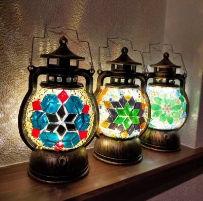 「LEDモザイクランタンを作ろう」 ◇トルコランプで使用するモザイクガラスを使って、少し小さめのランタンにモザイクガラスやビーズを貼り付けます☆ |