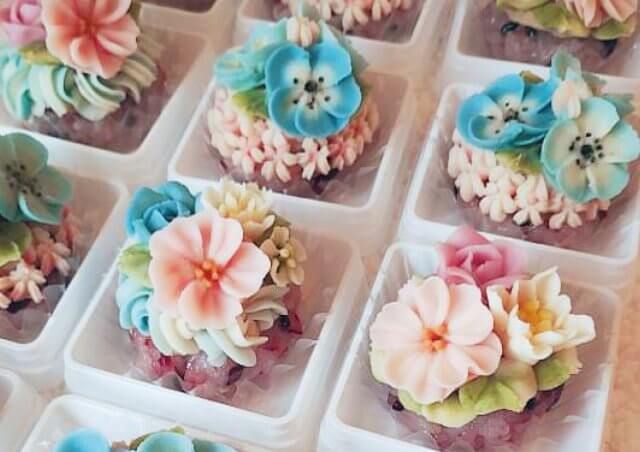 その思いで作られる美しい「お花おはぎ」は、天然の着色料のみで彩らています。