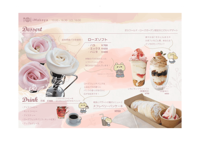 バラの花で作った自家製ソフトクリームなどお楽しみいただけます。